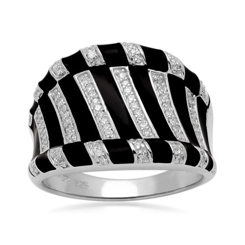 @@@ Product Details : Sterling Silver Black Enamel Diamond Ring (1/4 cttw, I-J Color, I2-I3 Clarity), Size 9